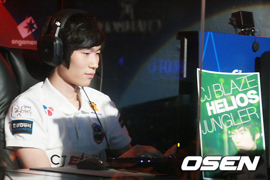 CJ 블레이즈는 7일 서울 용산 온게임넷 e스포츠 상설경기장에서 벌어진 '2013 LOL 챔피언스 리그(이하 롤챔스)' 서머시즌 KT 불리츠와 8강전서 0-1로 뒤진 2세트서 '헬리오스' 신동진과 '캡틴 잭' 강형우가 위아래로 흔들면서 승리, 스코어를 1-1 원점으로 돌렸다.