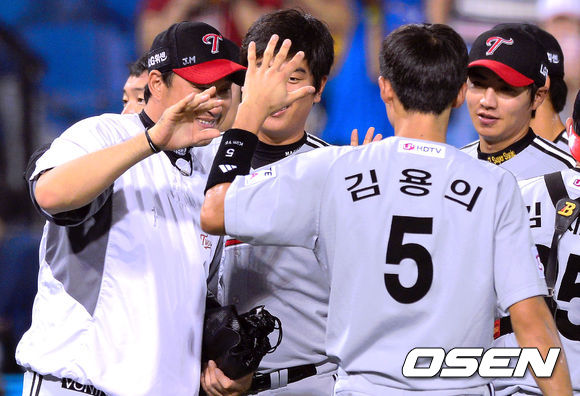 경기종료후 LG 봉중근이 맹활약 펼친 김용의와 하이파이브를 나누고 있다./ soul1014@osen.co.kr