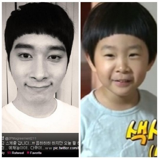특히 황찬성과 김민율 닮은꼴 사진은 밤톨 머리 스타일뿐만 아니라 표정까지 닮아 웃음을 자아낸다.