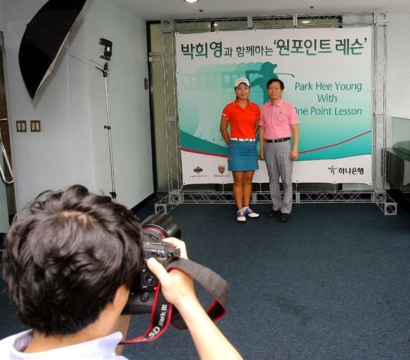 박희영은 8일 강남 스포월드 골프연습장에서 하나은행 PB 고객을 대상으로 한 원포인트 레슨 행사를 가졌다.