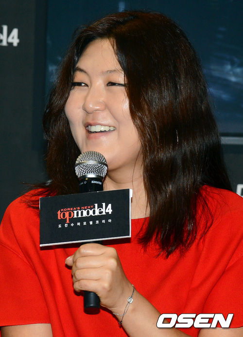 8일 오후 서울 신사동 가로수길 한 카페에서 진행된 온스타일 '도전수퍼모델코리아4' 제작발표회에서 한혜연이 질의응답 시간을 갖고 있다.