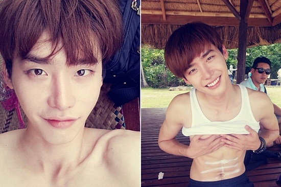 또 다른 사진에서는 하얀색 민소매티셔츠를 걷어 올리고 팬서비스 차원에서 복근을 살짝 공개했다. 특히 이종석은 하얀색 물질로 배에 한자로 '왕'자를 새겨 웃음을 자아낸다.