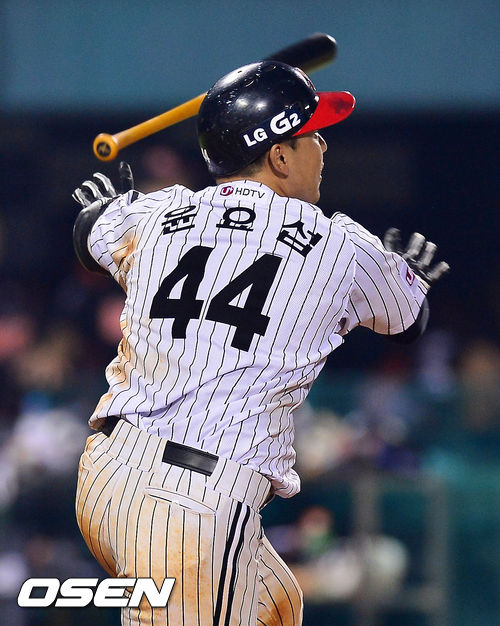 8일 오후 잠실 야구장에서 열린 2013 한국야쿠르트 세븐프로야구 LG 트윈스와 롯데 자이언츠의 경기, 7회말 무사 주자 만루 LG 윤요섭이 좌익수 희생플라이로 1타점을 올리고 있다.