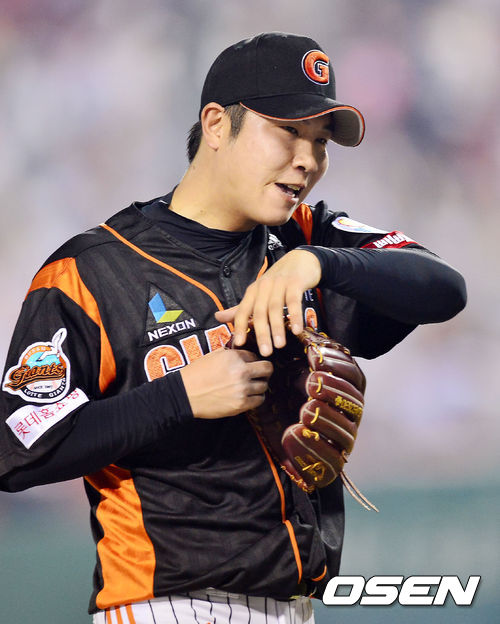 경기를 마치고 김성배가 땀을 닦고 있다. / rumi@osen.co.kr