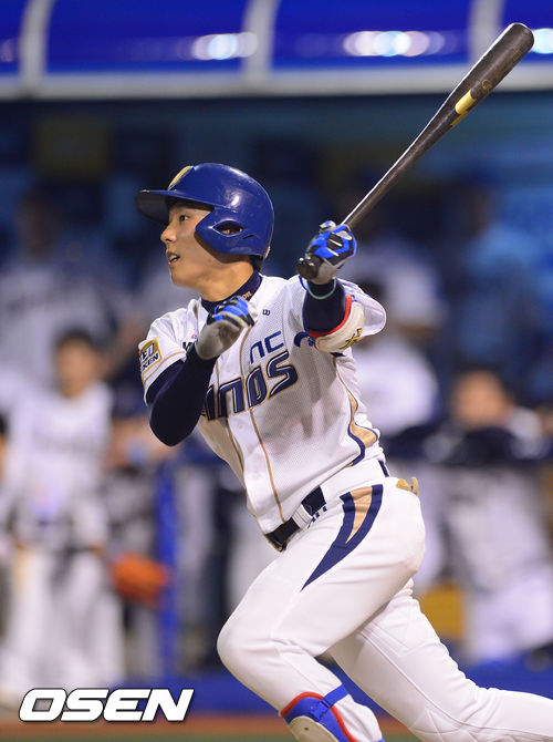 연장 12회말 끝내기 안타를 날린 김성욱이 타구를 바라보고 있다./ soul1014@osen.co.kr