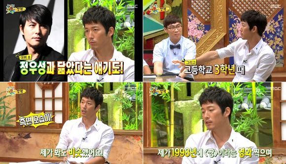 그는 "사무실에서 선배를 보면 인사를 하고 이런 저런 이야기를 하는데 우성 형을 보고는 인사를 한 다음에 얼굴 측면이 멋있으니까 옆으로 돌아서서 앉아 있었다"고 말하며 재치있는 입담을 자랑했다.