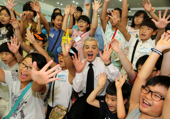 세르지오 호샤 한국지엠 사장과 직원 자녀들./한국지엠 제공.