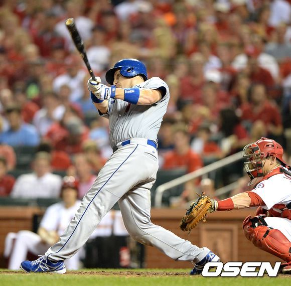 9일(이하 한국시간) 미국 미주리주 세인트루이스에 위치한 부시스타디움에서 벌어진 2013 메이저리그 세인트루이스 카디널스와 LA 다저스의 경기, 5회초 2사 1,3루에서 다저스 엘리스가 스리런 좌월 홈런을 날리고 있다.