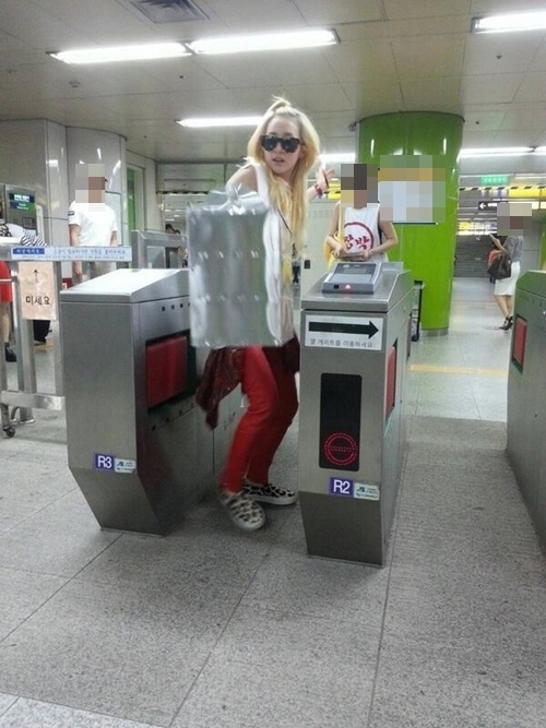 공개된 사진 속 산다라박은 철가방을 손에 든 채 지하철 역 안 개찰구를 통과 중이다. 금발 사과머리에 선글라스를 쓰고 붉은 색 바지를 입은 산다라박의 모습이 상큼하다. 더불어 깜짝 놀란 듯한 산다라박의 코믹한 표정이 웃음을 자아낸다.