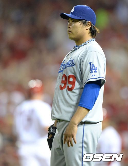 4회말 이디어의 황당한 송구로 1실점 한 뒤 류현진이 멍하니 어딘가를 바라보고 있다. /sunday@osen.co.kr