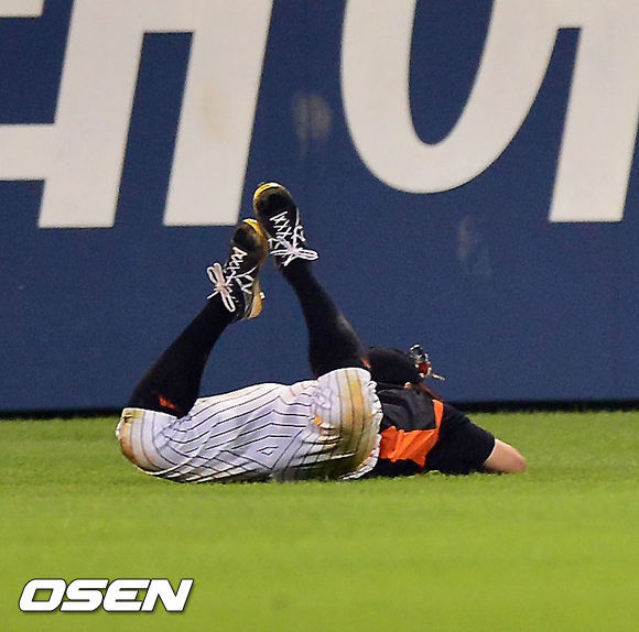 9일 두 팀의 맞대결을 앞두고 잠실구장에서 만난 김시진 감독은 전날 경기를 떠올리며 "아이구 넘어갔다 싶어서 뒷목을 잡았다. 그런데 준우가 다이빙캐치를 하는 게 아닌가. 만약 공을 못 잡았으면 벌떡 일어나서 후속동작을 했을텐데 가만히 엎드려있는 걸 보고 '잡았구나' 싶었다"며 웃었다.