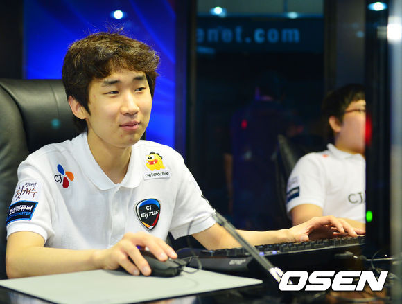 9일 오후 서울 용산 온게임넷 e스포츠상설경기장에서 '2013 LOL 챔피언스 리그(이하 롤챔스)' 서머 시즌 8강전 2회차 CJ 프로스트와 나진 실드의 경기에 앞서 CJ 프로스트의 빠른별 정민성이 선발 출전을 앞두고 몸을 풀고 있다.