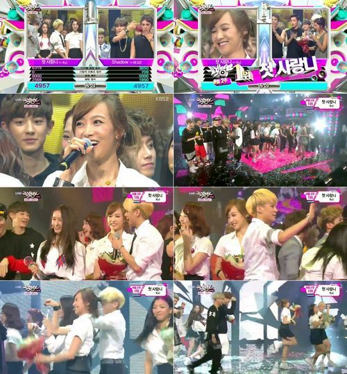 걸그룹 에프엑스가 신곡 '첫 사랑니'로 컴백 후 첫 지상파 1위의 영예를 안았다. 공약으로 내걸었던 엑소의 '으르렁' 퍼포먼스로 시청자의 눈도 즐겁게 했다.