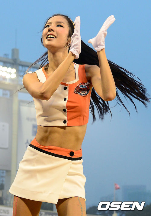9일 오후 잠실구장에서 열린 '2013 한국야쿠르트 세븐프로야구' LG 트윈스와 롯데 자이언츠의 경기, 롯데 치어리더 박기량이 멋진 공연을 선보이고 있다.