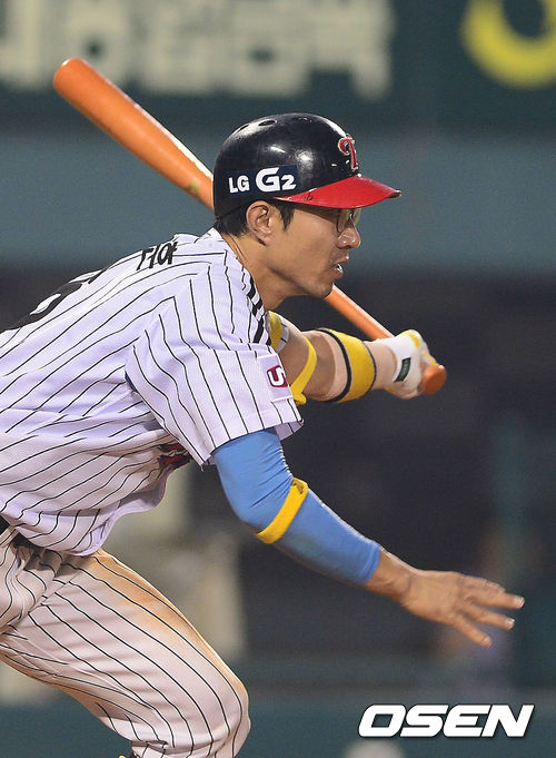 9일 오후 잠실구장에서 열린 '2013 한국야쿠르트 세븐프로야구' LG 트윈스와 롯데 자이언츠의 경기, 4회말 무사 2루 LG 정성훈이 1타점 적시타를 때리고 있다.