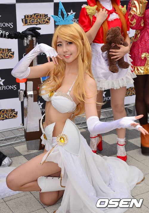 9일 오후 서울 용산 온게임넷 e스포츠상설경기장에서 '2013 LOL 챔피언스 리그(이하 롤챔스)' 서머 시즌 8강전 2회차 CJ 프로스트와 나진 실드의 경기에 앞서 '코스프레 데이' 행사가 열리고 있다.