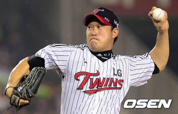 9일 오후 잠실구장에서 열린 '2013 한국야쿠르트 세븐프로야구' LG 트윈스와 롯데 자이언츠의 경기, 8회말 2사 2,3루 LG 봉중근이 마운드에 올라 역투하고 있다.