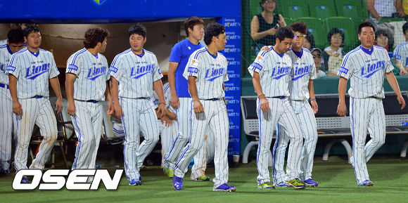 경기종료 후 패한 삼성 선수들이 아쉬워하고 있다 . / soul1014@osen.co.kr