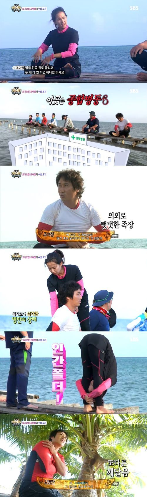 이에 조여정은 김병만 옆에서 개인교습을 해줬고 김병만은 덕분에 피로를 조금이나마 풀었다. 김병만은 "요가를 하니까 몸이 풀렸다. 스트레칭이 중요하다는 걸 깨달았다"고 전했다.