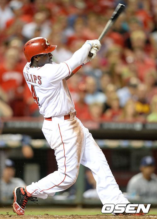 6회말 1사 2루에서 신시내티 필립스가 좌월 투런 홈런을 치고 있다.