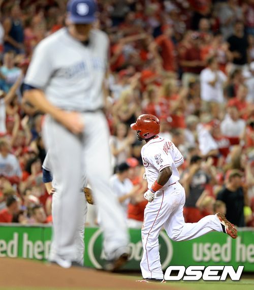 6회말 1사 2루에서 신시내티 필립스가 좌월 투런 홈런을 치고 그라운드를 돌고 있다.