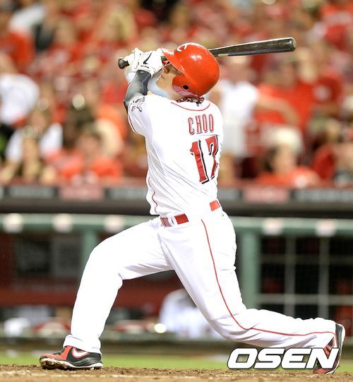 8회말 무사 1루에서 신시내티 추신수가 외야플라이를 날리고 있다. /sunday@osen.co.kr