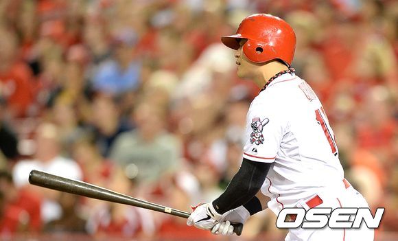 8회말 무사 1루에서 신시내티 추신수가 외야플라이를 날리고 아쉬워하고 있다. /sunday@osen.co.kr