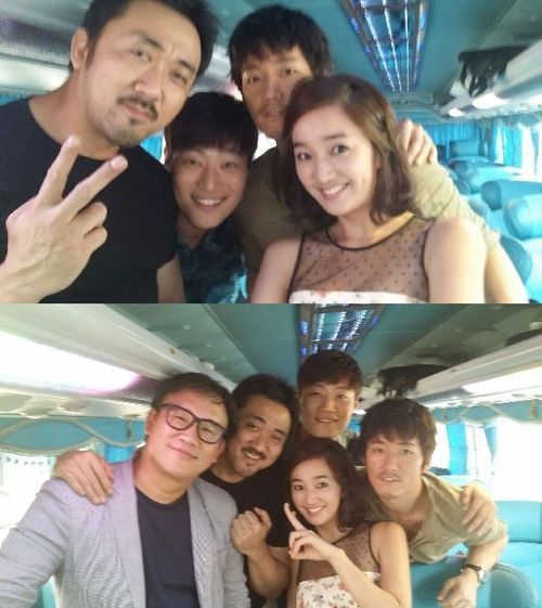 사진 속 마동석과 장혁, 수애, 이희준 등의 배우들은 어딘가로 이동중인 듯 환한 미소를 짓고 있다. 다정한 포즈를 취하고 있는 배우들의 모습에서 친밀함이 묻어난다.