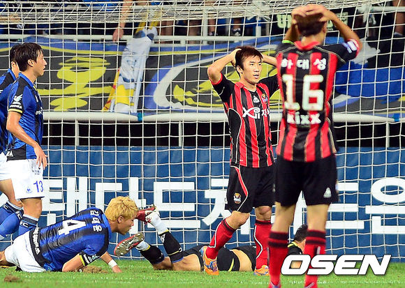 10일 오후 인천축구전용경기장에서 열린 '현대오일뱅크 K리그 클래식 2013' 22라운드 인천 유나이티드와 FC 서울의 경기 전반 FC 서울 고요한이 득점 찬스를 놓친 뒤 아쉬워하고 있다.