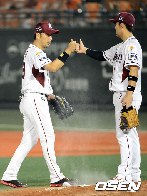 경기후 넥센 이택근과 김민성이 승리의 하이파이브를 하고 있다./ouxou@osen.co.kr