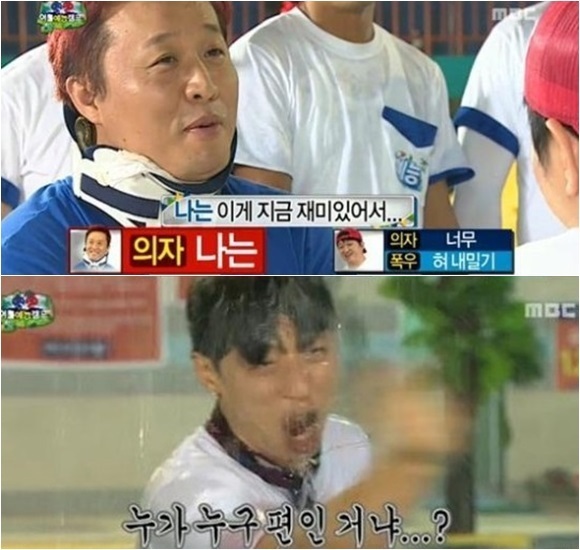 이날 유재석은 정준하가 "나는"이라는 말과 빠질 사람을 쳐다보는 경우에 물에 빠지게 돼 있었다. 이를 눈치 채지 못했던 정준하는 말끝 마다 "나는"을 붙여 유재석은 수차례 물에 빠졌고, 또 미안한 마음에 물에 빠진 유재석을 계속 쳐다봐 그에게 또 물벼락 세례를 안겼다. 나오면 빠지고 물벼락 세례를 받는 반복되는 상황에 사람들은 웃음을 감추지 못했다.