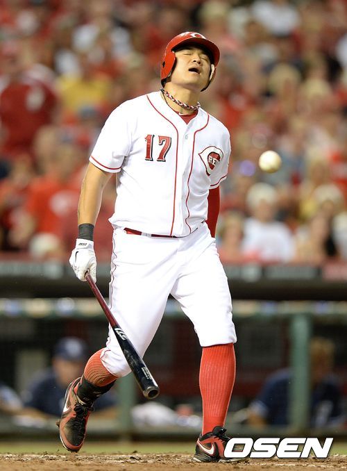 6회초 무사에서 신시내티 추신수가 파울에 아쉬운 표정을 짓고 있다.