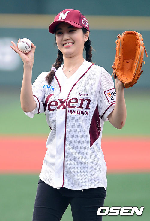11일 오후 서울 목동구장에서 열린 '2013 한국야쿠르트 세븐프로야구' 넥센 히어로즈와 한화 이글스의 경기전 발레리나 홍현영이 멋진 시구를 선보인 뒤 팬들에게 인사를 하고 있다.