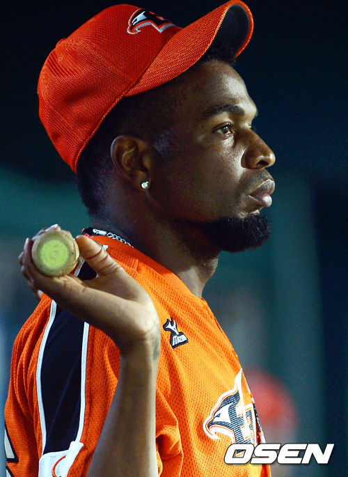 11일 오후 서울 목동구장에서 열린 '2013 한국야쿠르트 세븐프로야구' 넥센 히어로즈와 한화 이글스의 경기, 9회초 한화 바티스타가 경기를 바라보고 있다.