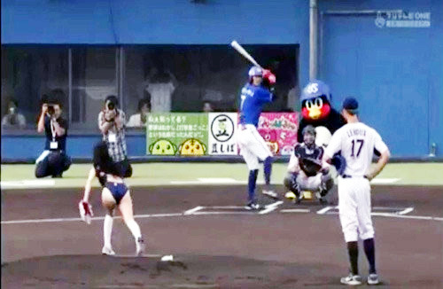 지난 11일 아키타 구장에서 펼쳐진 일본프로야구 야쿠르트와 요코하마 DeNA와의 경기에서 그라이바 모델과 탤런트로 활동중인 단 미쓰(32)가 초유의 비키시 시구를 펼쳤다. 얼마전 몸에 달라붙는 옷차림으로 화제를 모은 클라라를 압도하는 시구였다.