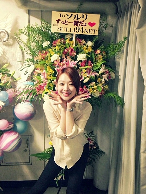걸그룹 에프엑스 설리는 지난 11일 오후 자신의 미투데이에 "오늘 너무 즐거운 시간이었죠? 일본팬 여러분과 함께할 수 있어서 정말 기분 좋았어요. 다음에 또 이런 시간 가졌으면.. 영원히 함께해요"라는 글과 함께 사진 한 장을 게재했다.