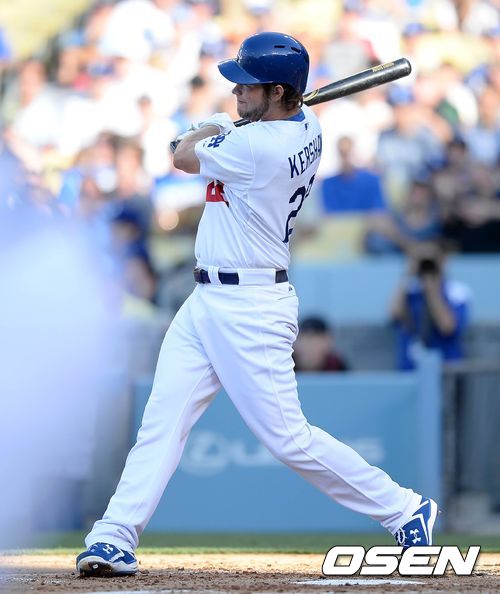 12일(이하 한국시간) 미국 캘리포니아주 로스앤젤레스 다저스타디움에서 열린 2013 메이저리그 LA 다저스와 탬파베이 레이스의 경기, 2회말 2사 2,3루에서 다저스 커쇼가 우전 2타점 적시타를 치고 있다.