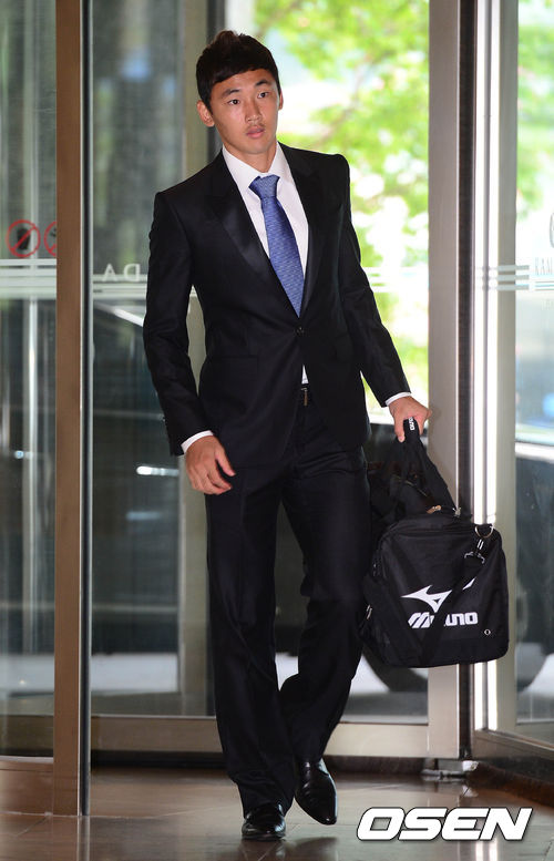 A대표팀에 소집된 조동건이 12일 오전 수원 라마다 프라자 호텔에 들어서고 있다.