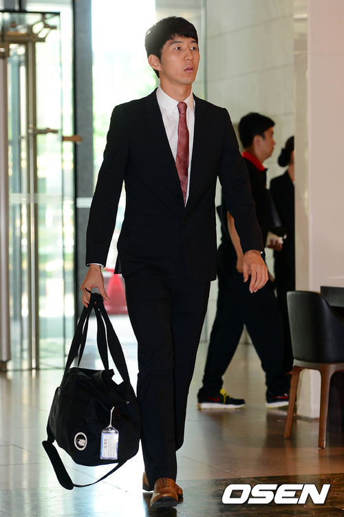 A대표팀에 소집된 김동섭이 12일 오전 수원 라마다 프라자 호텔에 들어서고 있다.