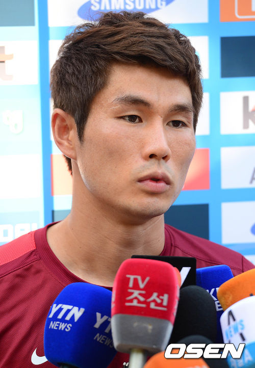 12일 오후 수원 월드컵 보조경기장에서 열린 A대표팀 훈련에서 조찬호가 인터뷰를 하고 있다.