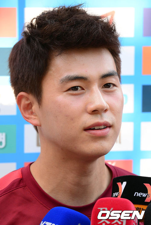 12일 오후 수원 월드컵 보조경기장에서 열린 A대표팀 훈련에서 임상협이 취재진들과 인터뷰를 하고 있다.
