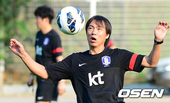 홍명보 감독,'가슴으로 공을 받아 멋지게!'