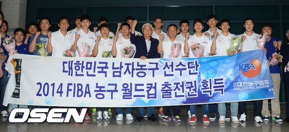 16년 만에 농구월드컵 출전권을 따낸 남자농구대표팀이 12일 오후 인천국제공항을통해 입국했다.