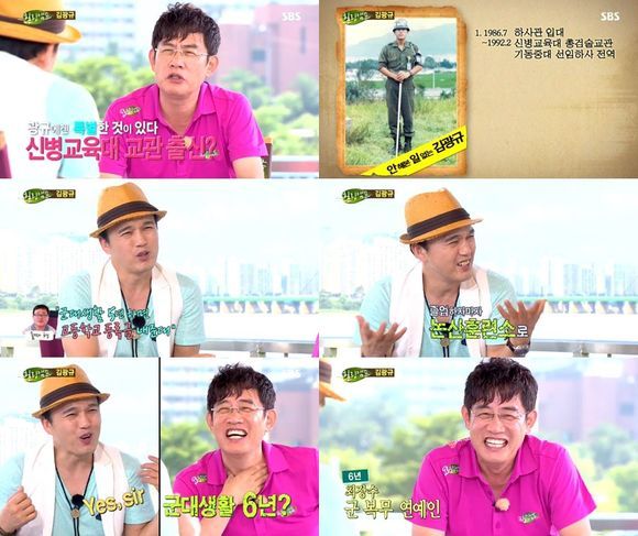 김광규는 12일 오후 방송된 SBS '힐링캠프-기쁘지 아니한가(이하 '힐링')'에서 "신병교육대 교관출신이다"라고 밝혔다.
