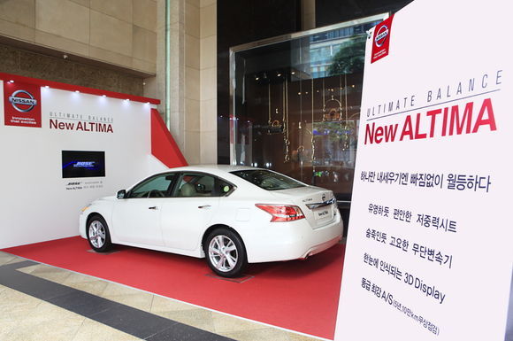 닛산 뉴 알티마를 가까이 체험할 수 있는 전시관이 마련됐다. 한국닛산은 오는 15일부터 21일까지 롯데백화점 잠실점에서 프리미엄 중형 세단 알티마(ALTIMA)의 특별 전시 부스를 운영한다고 밝혔다.