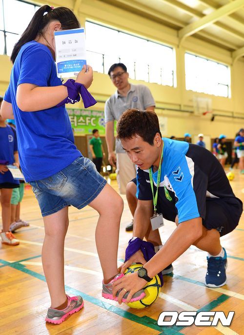 '라이온킹 '이동국이 13일 오후 충청북도 청원군 한국교원대학교에서 진행된 '온드림 써머 스쿨 - 함께 여는 아름다운 세상'에 참여해 어린이들과 함께 축구클리닉 시간을 갖고 있다.