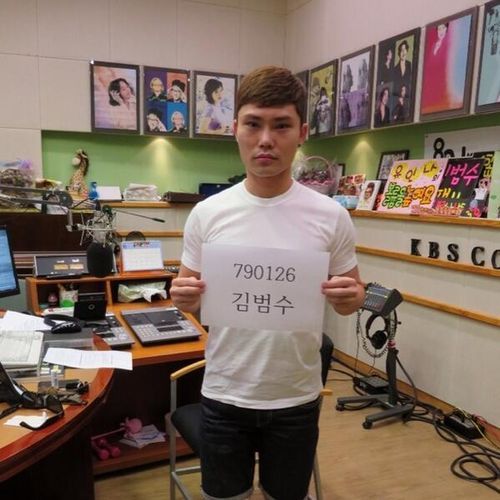 사진 속에는 '790126 김범수'라고 적힌 종이를 들고 있는 김범수의 모습이 담겨있다. 조금 달라진 듯한 눈매가 돋보이는 김범수의 모습이 웃음을 자아낸다.