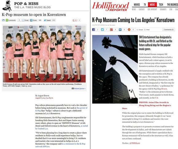 미국 유력 매체 LA타임즈는 지난 8일자 인터넷 판을 통해 “일반적으로 대중 문화 현상은 박물관에 안치되기까지 몇 십 년이 걸린다. 하지만 ‘한류’라 불리는 K팝의 파워를 이제 LA 코리아타운의 전용 박물관에서 만날 수 있다”며 “SM타운 뮤지엄은 미국에 K팝이 자리 잡는데 새로운 교두보 역할을 할 수 있을 것이다”라고 보도했다.