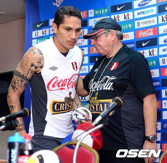 기자회견에 동석한 파올로 게레로(좌)와 세르히오 마르카리안 페루 감독 / 수원=지형준 기자 jpnews@osen.co.kr