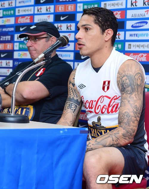 한국 대표팀에 이어 페루 파올로 게레로와 세르히오 마르카리안 감독이 기자회견을 하고 있다.